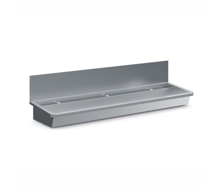 De Wastrog 3-KR RVS 1800mm is gemaakt van roestvrij staal en geschikt voor 3 kranen. De wastrog wordt geleverd inclusief afvoerplug en spatscherm.